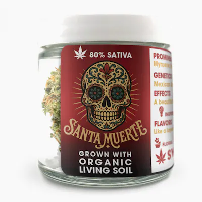 Sweetwater Farms Santa Muerte Genetics & Strain Info: - 80% Sativa.Effects: Flavors: Suggested Activity: Sweetwater Cannabis Flower: This brand cultivates cannabis indoors using living soil and organic compost tea blends to enhance plant health and terpene expression. Their controlled environment ensures superior quality, producing flower with exceptionally bold and vibrant terpene profiles. Indoor Grown, Slow Cured, Small Batch.Clean Weed Practices "This is why we ONLY use pesticides on a "AS NEEDED" basis and also only use Organically certified brands" Full Pesticide Statement