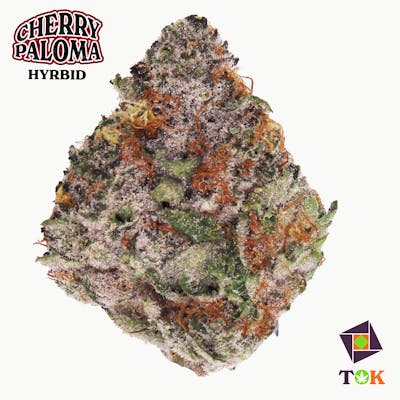 Cherry Paloma is Georgia Pie x Trop Cherry which is a slightly indica dominant hybrid strain (60% indica/40% sativa) created through crossing the infamous Gellati X Kush Mints strains. Although it’s hard to find outside of the Colorado area, Georgia Pie is a favorite among breeders and patients alike for its delicious flavor, sturdy structure and full-bodied high. This bud packs a sweet fruity berry flavor with hints of rich cherries and nutty dough. The aroma is very similar, although with hints of earthy herbs to it, too. The Georgia Pie high settles in a few minutes after your final toke, slowly working its way through your mind into a lifted state of pure happiness and euphoria that’s lightly tingly and hazy in nature. This tingly effect will soon work its way throughout the rest of your body, leaving you calm, totally at ease and pretty hungry at times. With these long-lasting effects and its super high 25-27% average THC level and 1-3% CBD level, Georgia Pie is often chosen to treat chronic stress, depression, appetite loss or nausea and insomnia. This bud has small and rounded popcorn-shaped olive green nugs with purple undertones, thin amber hairs and a coating of frosty purple-tinted white crystal trichomes. Effects Body High, Hungry, Relaxing, Sleepy, Uplifting May Relieve Depression, Insomnia, Nausea, Stress Flavors Cherry, Fruity, Herbal, Nutty, Sweet Aromas Berry, Cherry, Earthy, Fruity, Nut