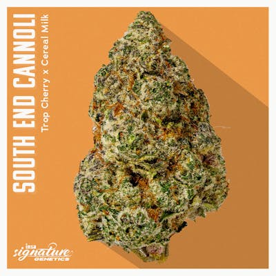 South End Cannoli is an Insa Signature Genetic, a balanced hybrid born from Trop Cherry and Cereal Milk; it’s crafted as a flavorful tribute to Springfield’s South End. Bursting with sweet cherry and bright citrus, its creamy undertone gives it a decadent twist that lingers on the senses. The effects elevate your mood, spark creativity, and bring out easy conversations before gently easing into a calm, balanced finish. South End Cannoli is the kind of strain that makes every session feel like a celebration.