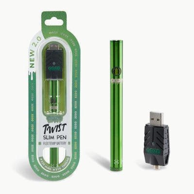 The Twist Slim 2.0 has a sturdier feel that has more weight in your hand, and immediately tells you it’s a quality device. This new model has a more streamlined silhouette. The collar that used to hold the threading at the top of the battery is now flush, making it look longer despite only being 1cm taller than the 1.0 version. The flex temp dial on the bottom has also been updated. Ooze lowered the voltage slightly, with a new range from 2.0V to 4.0V. This hits more of a sweet spot with oil cartridges that are notorious for burnt coils. Each voltage level on the dial is now a notch that clicks into place, so you know exactly how hot the device is heating at any given moment. The Twist Slim Pen features pulse wave technology, or buzzing feedback that tells you when the battery powers on and off, and when the cartridge has made a connection with the device. Click the button 5x to turn on and off and click 2x to activate Prep Mode. We highly recommend running a cycle of Prep Mode every time you turn the Twist Slim on. It does wonders to clear stubborn clogs in the cartridge! This battery has Safe Sesh Mode enabled, which means that the device can only heat in 10-second increments. This prevents overheating, protects the cartridge’s coil, and preserves those tasty terpenes. There are 2 methods of taking a puff; press the button and inhale, or simply inhale! The battery life of the Twist Slim 2.0 is amazing. It has an automatic shut-off, so it turns itself off after 12 minutes of inactivity. You’ll be amazed at how long you’ll go between charges now! Charging up this device is quick and easy. It includes the classic Ooze Smart USB charger that screws onto the battery like a cartridge and uses a wall adapter. It also is given the device a type C charging port right next to the battery. Use a type-c charger (sold separately) and the device can be used while it’s charging! There’s no need to let low battery power kill your vibe. Both charging methods rapidly recharge the Twist Slim Pen.