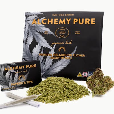 PapayaBerry Runtz x GovernMint Oasis and Banjo x Cotton Candy Sativa Dominant: A Blend of Benzina, Biscotti and Starfox flower. Preground flower infused with Kief. Roll your own kits include: 14 grams pre-ground flower, 1 pack of alchemy pure rolling papers, 1 book of alchemy pure matches.