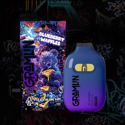This full gram All-In-One Vape is ready to smoke out of the bag. Like a fat stack of doughy cake piled high with sugary berries, this Blueberry Waffles hybrid vape's quality ceramic coil and filter tech mean big flavor and bigger clouds. The inhale-activated LED blinks 2x for heat-protection or 10x for low battery. USB Type-C recharbeable cord not included. No buttons, no fuss, just rip to unlock Gramlin Mode. @gramlinmode | gramlinmode.com - 1g AIO Vape - Ready To Smoke - Inhale-Activated LED - Hybrid