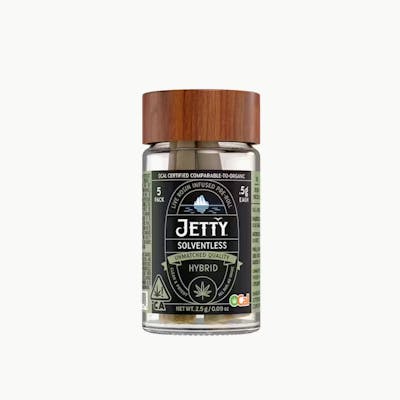 We start with OCal Certified (comparable-to-organic) top-shelf bud, selected for its flavor and potency. An infusion of live rosin comes next, made in-house using just ice, water, heat, and pressure. The result is unique pairings that bring out intense flavors and effects from complementary flower and hash terpene profiles. It’s a full-spectrum, full-body high that delivers. Top-shelf bud. Curated flower and oil pairings. Supercharged Potency. Find your flavor with Jetty Pre-Rolls.