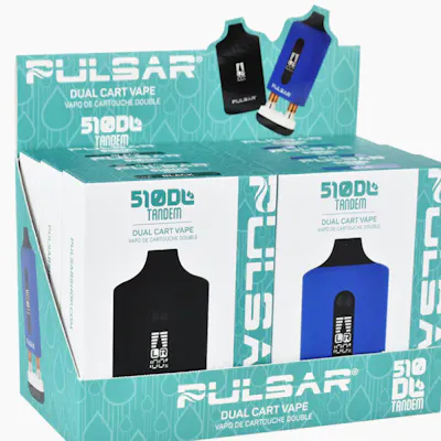 The Pulsar 510 DL Tandem doubles the fun with dual cartridge capability, letting you fire one, swap between, or hit both at once for massive clouds. Compact, discreet, and it features customizable voltage settings, preheat, and optional auto-draw for smooth, tailored sessions. With 510 compatibility, a water pipe adapter, and USB-C quick charging, it’s the ultimate blend of power and versatility. Product Features 650mAh battery capacity Five voltage settings (1.8V/2.4V/2.8V/3.4V/3.8V) Pre-heat function (1.8V) Dual cartridge vaporizer Fire cartridges & adjust voltages independently or simultaneously Optional auto-draw functionality Two tactile control buttons Compact & discreet bar-style body Magnetic silicone mouthpiece & cartridge magazine connection Universal 510 threading LCD display Water pipe compatible USB-C charging port Short-circuit protection