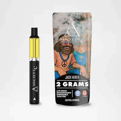 Society C Live Resin Disposable Sativa – Jack Herer (2g) offers a classic and uplifting experience crafted from fresh-frozen cannabis to preserve its full terpene profile. Known for its bright and refreshing flavor, this live resin delivers notes of pine, citrus, and subtle earthy sweetness for a smooth and invigorating inhale. Featuring a terpene profile rich in Terpinolene, Caryophyllene, and Pinene, Jack Herer provides an energizing and clear-headed high that promotes focus, creativity, and motivation, making it an ideal choice for daytime use and productive sessions.