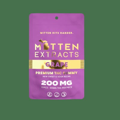 Savor the bold and juicy flavor of Mitten Extracts Intense Fruit Chews in Grape. These chews deliver the classic taste of ripe, sweet grapes with a potent 200mg dose of THC per package. Perfect for any time of day, Grape chews offer a balanced high that relaxes the body, uplifts the mind, and enhances creativity. Treat yourself to a flavorful and elevated experience with these expertly crafted cannabis chews.