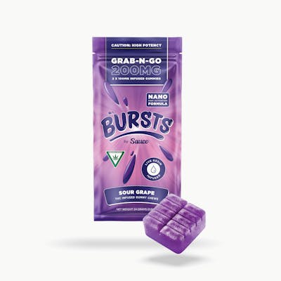 Get a tangy twist with Sauce Grab-N-Go Bursts Gummies in Sour Grape. These gummies pack the bold and juicy flavor of ripe grapes with a sour kick, delivering a fun and flavorful treat. Infused with 200mg THC per package (10mg THC per gummy), they provide uplifting effects that inspire creativity, promote relaxation, and enhance social interactions. Perfect for any occasion, Sour Grape gummies are a convenient and delicious way to elevate your cannabis experience.