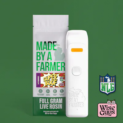 Made By A Farmer Live Rosin Disposable Hybrid Super Boof 1g delivers a solventless, full-spectrum experience crafted for true cannabis connoisseurs. Extracted using premium live rosin techniques, this Hybrid vape captures the vibrant terpene profile of Super Boof, bursting with sweet citrus, tropical fruit, and subtle earthy undertones. Each inhale offers smooth, flavorful vapor with bright, candy-like notes balanced by a creamy finish. The effects are well-rounded and euphoric, starting with an uplifting cerebral boost that enhances mood and creativity before settling into a relaxed, easygoing body calm. Convenient and ready to use, this 1g disposable provides potent, clean, and flavorful hits—perfect for anytime enjoyment, social sessions, or elevating your daily vibe with high-quality, farm-crafted live rosin.