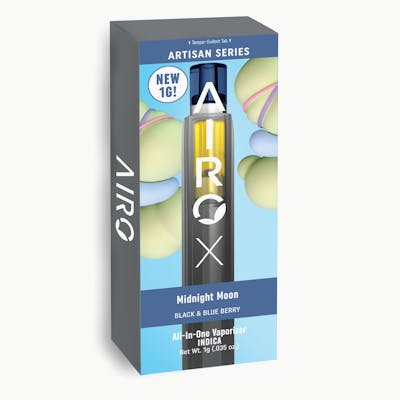 Embrace the calm of Midnight Moon, a soothing Indica from the AiroX Disposable Artisan Series. This 1g disposable vape delivers a terpene profile rich in Myrcene, Limonene, and Caryophyllene, offering earthy, floral, and subtly sweet flavors. Midnight Moon provides a deeply calming and sedative high, perfect for unwinding at the end of the day, alleviating stress, or preparing for restful sleep. Elevate your evening routine with the luxurious experience of AiroX Artisan Series.