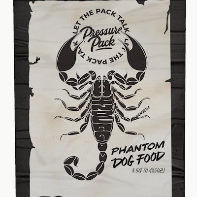 Pressure Pack x 42 Dugg Prepacked Indica Phantom Dog Food 3.5g is a premium indica cannabis flower created through a special collaboration, known for its bold aroma, dense frosty buds, and deeply relaxing effects. This strain typically features thick, resin-covered flowers with dark green tones and bright orange hairs. Its terpene profile offers rich notes of earthy pine, subtle citrus, and gassy undertones, delivering a smooth and flavorful smoke. Phantom-influenced strains are often associated with calming body effects and a heavy, soothing high that can help promote relaxation and sleepiness, making them ideal for evening sessions.