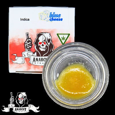 Anarchy Extracts Live Resin Budder Indica Blue Cheese 1g is a bold, savory concentrate known for its pungent aroma and deeply relaxing effects. With a terpene profile likely dominated by Myrcene, Caryophyllene, and Limonene, it delivers funky notes of blue cheese, sweet berries, and earthy spice in a rich, creamy texture. The high is calming and sedative, making it ideal for evening use, stress relief, or winding down before bed. Crafted from fresh frozen flower, this 1g budder offers full-spectrum potency and flavor in every dab.