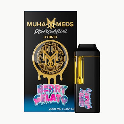 The Muha Meds Disposable Hybrid Berry Gelato 2g offers a luscious blend of mixed berries and creamy sweetness, delivering a decadent flavor profile with hints of citrus and a subtle herbal finish. Each inhale provides a smooth and flavorful experience reminiscent of a rich dessert. Designed for convenience, this 2-gram disposable vape comes pre-charged and ready to use, ensuring a hassle-free session. Whether you're seeking a balanced effect or simply indulging in a delightful flavor, the Berry Gelato disposable vape delivers a premium cannabis experience in a sleek, portable form.