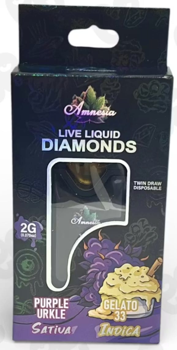 Amnesia MI | Purple Urkle x Gelato 33 | Liquid Diamond AIO | 2g
