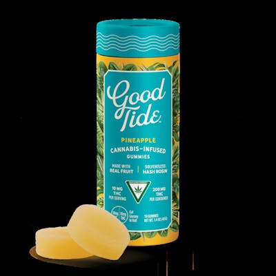 Transport yourself to the tropics with Good Tide Hash Rosin Gummies in Pineapple. These gummies deliver the bold and juicy flavor of ripe pineapple, paired with the premium potency of hash rosin for an elevated edible experience. Each package contains 200mg THC (10mg per gummy), providing an uplifting high that sparks creativity, enhances social moments, and promotes relaxation. Treat yourself to this tropical delight and enjoy a flavorful cannabis journey.