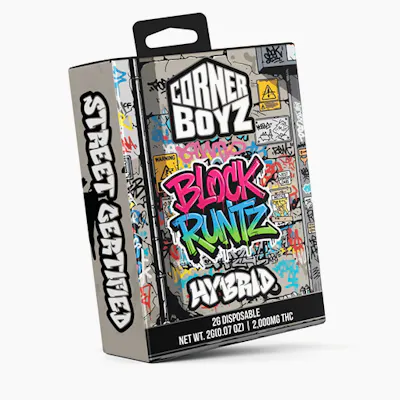 Experience bold flavor and smooth convenience with the Corner Boyz Block Runtz Disposable, a Hybrid vape designed for a balanced and flavorful session. This 2g disposable delivers a rich profile of sweet candy-like fruit, subtle citrus, and creamy undertones. Block Runtz offers a well-rounded high that combines uplifting euphoria with a relaxing body feel, making it suitable for any time of day. Perfect for those seeking a potent, ready-to-use vape with consistent flavor and a smooth, satisfying finish.