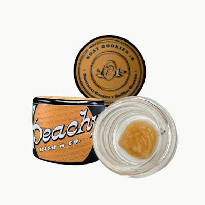 Peachy Hash & Co. Live Rosin Hybrid Goat Cookies #6 1g delivers a premium, solventless concentrate experience packed with bold flavor and balanced effects. Crafted from fresh-frozen cannabis to preserve its full terpene profile, this live rosin features a smooth, buttery consistency and rich aromatic depth. Goat Cookies #6 blends sweet, cookie-like creaminess with earthy undertones and a touch of gassy spice for a complex, dessert-inspired inhale. The hybrid effects offer an uplifting cerebral buzz that enhances mood and creativity, followed by a mellow body relaxation that keeps the experience smooth and functional. Potent, terpene-rich, and expertly produced, Peachy Hash & Co. Goat Cookies #6 Live Rosin 1g delivers a clean, flavorful dab from start to finish.