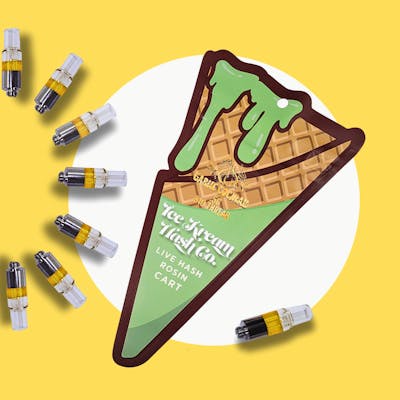 Ice Kream Hash Co. Live Rosin Cart Bananaconda .5g delivers a rich, solventless experience with bold banana flavor and funky, earthy undertones. Crafted from fresh frozen flower and pressed without solvents, this live rosin cart features a terpene profile rich in Myrcene, Limonene, and Caryophyllene. Bananaconda offers a balanced and euphoric high, ideal for anytime use—perfect for relaxing, socializing, or enjoying a flavorful, clean hit on the go. Smooth and potent, it’s a true connoisseur’s choice in a compact .5g format.