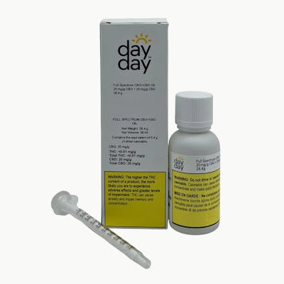 DayDay's Full Spectrum CBG+CBD Oil contains 20mg CBG and 20mg CBD in a 30ml oil format. CBG and CBD isolates are blended to a 1:1 ratio, and combined with nine natural terpenes including Pinene, Linalool, Eucalyptol, and Caryophyllene. The formula is then diluted in MCT oil.