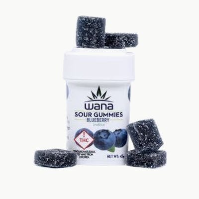 200 MG THC PER PACKAGE Consistent. Potent. Delicious.A mellow tartness blends with a touch of sweetness to create these Wana Blueberry Sour Gummies. Handcrafted with all natural, vegan and gluten free ingredients, the gummies are infused during the cooking process with indica terpene-enhanced distillate, which can evoke feelings of relaxation and calmness.IngredientsSugar, Corn Syrup, Pectin, Citric Acid, Natural Flavoring and Coloring, Sodium Citrate, THC. Vegan and Gluten Free