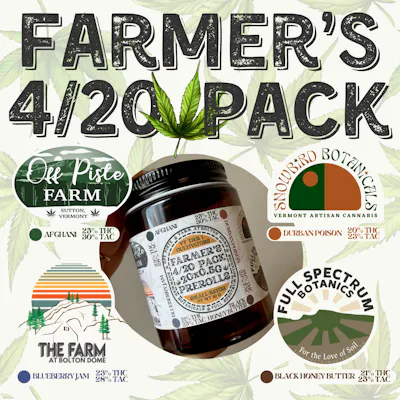 Enjoy some of the best sungrown cannabis Vermont has to offer! This party ready pack offers 20 prerolls from 4 farms for you to puff, puff, pass with friends. Delight your senses with Afghani, a strain Ben from Off Piste has mastered in the great outdoors. It has been captivating audiences for years, and it's an honor to partake in such a sustainably grown plant from a farm using renewable solar energy. Rise and shine with an aromatic Durban Poison. Intentionally pheno-hunted by Cyn & Ivan from Snowbird Botanicals, this plant loves to grow under the VT sun! An invigorating landrace sativa that brings you a calm, collected focus without the jitters. Find your new favorite in Blueberry Jam! Meticulously bred by the very talented Andrew and Sharon from Farm at Bolton Dome. Bringing you a burst of flavor with lasting soothing effects, unwind, and enjoy the whimsical bliss. Relax and allow your spirit to be free with Black Honey Butter, a field favorite this season at Full Spectrum Botanics! Such lively plants that produce a deep, rich aroma and flavors. A perfect companion for any time, anywhere. Grown with love and healing intention. This is a limited edition collab - support your small VT Farmers with every jar! We highly recommend any one of these for you to try.