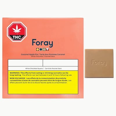 Nothing feels like home quite like apple pie. We’ve taken our Foray signature premium white chocolate and added a pinch of sweetness with all-natural caramel and apple flavours. Foray Chocolates use cannabis distillate, removing noticeable cannabis taste and smell. All of our chocolate products are proudly developed and manufactured in Charlottetown, PEI, by our team of experts, and tested rigorously to ensure a high-quality, consistent dosage with each use.