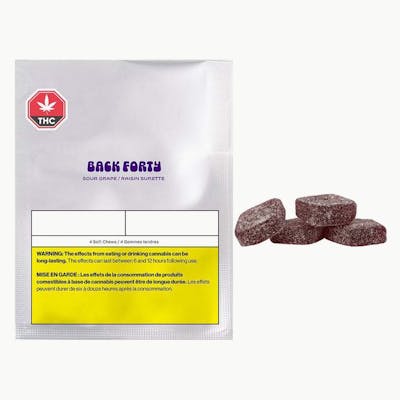 These delicious Sour Grape soft chews will remind you of the good ol' days. Each pack contains four soft chews, each with 2.5mg of THC pure distillate. Always packaged in a resealable foil pouch to make sure your chews stay fresh. Back Forty requires no introduction because it already feels familiar, with a product suite that fits seamlessly into your day-to-day and without the need to overthink its purpose of providing a better experience for less. Take a trip and explore the Back Forty.