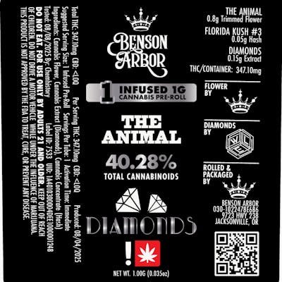 Benson Arbor - Diamond Infused Pre-Roll 1g - The Animal (S)
