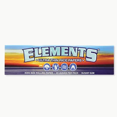 Elements king size ultra thin rice rolling papers. 33 leaves per pack.