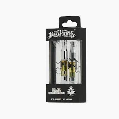 A legendary vape cart reimagined and refined to deliver an all-day experience. The Heavy Hitters 2-gram Ultra cart packs a 2000mg cannabinoid blend delivering an uplifting, functional, and full-spectrum experience. With 55% THC for that perfect high, 15% THCV for energizing clarity, 10% CBC to enhance your mood, and 10% of both CBG and CBD for overall well-being, this is the vape cart for those who demand more.