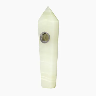 Our purpose is to cultivate a connection to one's highest optimal energy. Gemstones carry many healing and awakening properties that can benefit the mind, body, heart and soul. Be empowered to live life wholeheartedly. A refined take on a classic, the Jewel Pipe brings a modern edge to your smoking experience. Carved from genuine crystal, its sharp, faceted angles catch the light beautifully, making this piece as eye-catching as it is functional. Each piece is naturally one-of-a-kind, offering a unique connection to the earth with every use. The geometric design isn’t just visually striking; it also provides a comfortable grip, making every session feel as smooth as your draw. Designed for effortless use, this piece features a removable screen for easy maintenance, while its durable crystal construction makes it both functional and timeless. Gemstone Size: 4.25" x 1.25" x 0.75" Bowl diameter: 0.5" Package Size: 5.25" x 1.75" x 1.25" Replaceable Mesh Bowl (Pipe Screens)