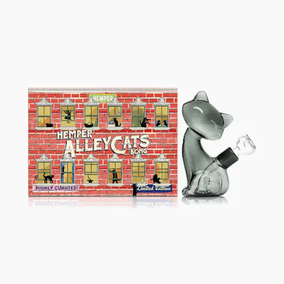 Bring the Alley Cats energy to every session with the HEMPER Alley Cats Bong — a bold, eye-catching piece that perfectly balances form and function. Crafted from durable glass and featuring the signature cat-inspired design, this bong delivers smooth, powerful hits through its precision-engineered percolation system. It’s the ideal centerpiece for smokers who love standout style without sacrificing performance. Complete the collection with the Alley Cats Hand Pipe and XL Bong to keep your lineup fierce and consistent from bowl to bong.