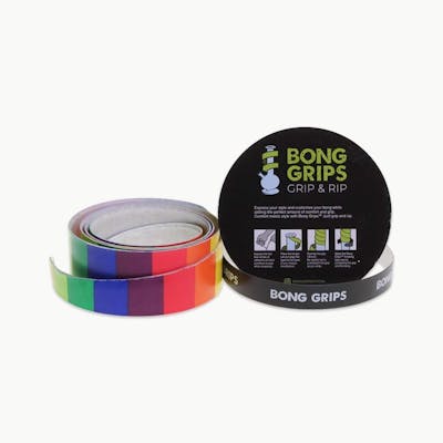 Bong Grips in a Rainbow wrap. Express your style and customize your bong while adding the perfect amount of comfort and grip. Comfort meets style with Bong Grips. Just grip and rip. Directions: Expose the first few inches of adhesive on back (continue to peel while wrapping). Place the longer pre-cut edge flat against the base of your bong''s mouthpiece. Overlap the grip 1/8-inch. Be careful not to overstretch the grip as you wrap. Apply the Bong Grips finishing tape evenly contacting the grip and the bong.