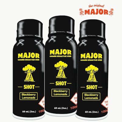 2oz Blackberry Lemonade Fast Acting THC Shot MAJOR is powered by SoRSE, a proprietary fast-acting water-soluble emulsion technology that makes consuming cannabis easier, safer, and more fun! MAJOR packs a punch in 8-15 minutes. Throw it all back at once or micro-dose and make it last!