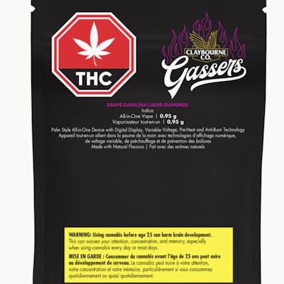 Introducing Claybourne Gassers — the latest evolution in high-performance cannabis. Packed with liquid diamonds and dripping with strain-specific terpenes, these Palm-style All-in-One vapes hit fast, and stay loud from start to finish. Gassers deliver true Claybourne power in a sleek, grab-and-go device. If you're about big clouds, bold terps and real potency, this is your lane.