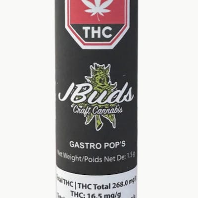 Introducing, Gastro Pops. This strain delivers high-THC with a popping terpene content. Cultivated and processed by an Indigenous, family‑run, craft cannabis facility located in Summerland, BC. This product contains three half-gram pre-rolls, packaged in a plastic tube that captures it's juicy aroma. Gastro Pops is an indica-dominant creation, coming from the lineage of Grape Gas and Apples n' Bananas. The nose of this product is sweet, grape, fruity and has a craft tube appeal.