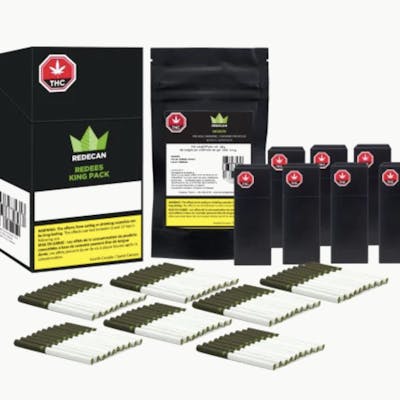 The Redecan King Pack offers 1oz of your favourite Redecan strains, pre-rolled in their signature cigarette-style packaging, and sealed in packs of 10 to guarantee freshness. Thoughtfully designed at 0.4g for an even-burning experience, Redees by Redecan are rolled with all bud, no shake. Each Redecan King Pack contains 70 Redees and is available in a mixed Redees variety pack containing Wappa, Cold Creek Kush, and Warlock.