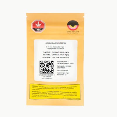Extracted from house-bred LSO Mango Cake strain, this 100% pure single-strain live resin 510 cart delivers the full fresh-plant terpene expre Passion of Mango Cake — nothing added, nothing taken away. Mango Cake is an exotic dessert cross of GOOD BUDS’ juicy Mango Taffie and the sweet, creamy Wedding Cake. It leads with ripe mango sweetness and a subtle gassy spark, followed by vanilla frosting undertones and a creamy cake-dough exhale. Expect a bright, tropical profile layered with soft pastry notes — true to the flower and unmistakably Mango Cake. Crafted in small batches from living soil organic flower, fresh frozen at harvest and extracted by Common Roots Extracts on Vancouver Island, BC.