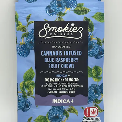 Smokiez- Blue Raspberry INDICA- 100mg Gummies (10mg/10pcs)