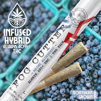 Maine Blueberry (Infused Hybrid) A match made in Vacationland... a quintessential flavor of New England... Experience the freshness of Wild Maine Blueberries elevated with Live Blue Dream terps in a sharable 2-pack of high quality pre-rolls. These Fog Cutters hit with a tart and juicy blueberry kick with just a touch of warm sweetness to keep the flavor grounded while you get lifted.