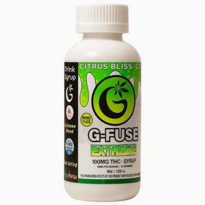 "EXTREME" CITRUS BLISS [HYBRID] THC SYRUP - 100MG Indulge in the invigorating rush of G-Fuse’s "Extreme" Citrus Bliss THC Syrup. This premium cannabis-infused elixir is designed to elevate your senses and soothe your spirit with every sip. This fast-acting syrup packs a potent 100MG of THC into a convenient 4oz bottle, perfect for mixing into your favorite beverages (e.g. sodas, cocktails, sparkling water, etc.) for a refreshing twist. It's like sunshine in a bottle—crisp, invigorating, and utterly addictive for citrus lovers. Bursting with a bold medley of zesty lemon, tangy lime, and vibrant orange, this syrup delivers an explosive citrus explosion that's both sharp and delightfully sweet. Subtle hints of tart grapefruit add an extra layer of juicy complexity. This premium elixir was engineered using Mind Flex's proprietary formula that blends THC and cannabinoids with adaptogens and nootropics. This syrup is designed to provide an uplifting mood boost that supports cognitive function and mental clarity without heavy sedation. Enthusiasts have been known to turn to this product in an effort to relieve symptoms associated with pain, stress and inflammation. Prepare for a vibrant tropical-inspired adventure of pure bliss with G-Fuse’s "Extreme" Citrus Bliss THC Syrup. PLEASE REFER TO PRODUCT PACKAGING AND VENDOR WEBSITE FOR DOSAGE INSTRUCTIONS, INGREDIENTS, AND PREPARATION METHODS PRIOR TO USE.