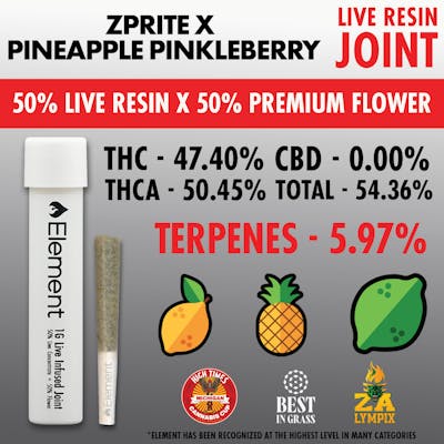Element x Pro Gro - 1g Live Resin Joint - Zprite X Pineapple Pinkleberry
