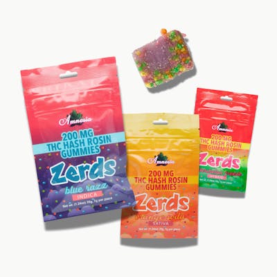 Amnesia - 200mg Zerds Hash Rosin Gummies - Strawberry Shortcake