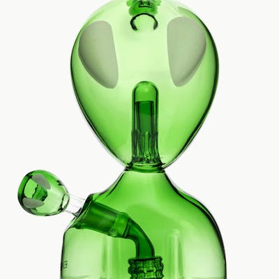 The big sibling to our Alien Bong, featuring not just the head but the bust of our extraterrestrial friend, making for a more profound and pronounced presence. Larger in size, it promises a deeper, more voluminous hit, akin to breathing in the vastness of space itself. SPECS: Height: 9.1" Diameter: 4.4" Depth: 4" Transparent Green Glass Alien w/ Glow Eyes 45 Degree Recessed 14mm Joint Showerhead Perc to Diffused Straight Perc Cool Bong Big Bong Percolator Bong