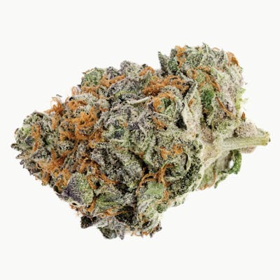 Dark green in colour, with beautiful royal purple stripes and light green underbelly, with bright orange pistils. Chunky, medium-large, rounded elongated triangles in shape. Layers of sweetness aroma, with undertones of herbal/hops.