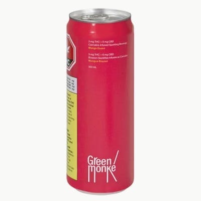 Green Monké Mango Guava is a popular low-dose cannabis ready to drink beverage. This drink is pretty in pink. Green Monké has a 2:1 CBD to THC ratio with 6 mg of CBD and 3 mg of THC. Best served with a slice of orange over ice. Made without gluten or animal products.