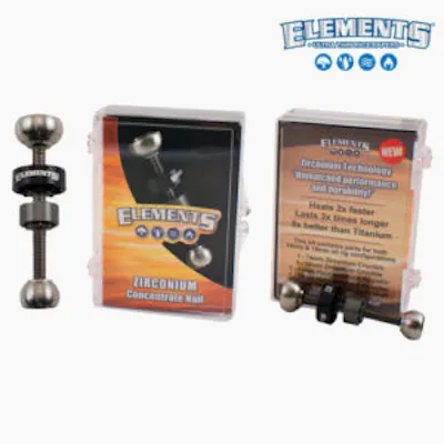 The Elements Zirconium Concentrate Nail is a must have for anyone who uses an oil rig and dome. Made out of Zirconium, this nail heats twice as fast as titanium and last three times as long! Each one comes with 14mm and 18mm crucible, a 14mm and 18mm anodized rig collar, and a 4mm threaded titanium shaft for easy adjustments. Made to be easier and quicker to use, the Elements Zirconium Concentrate Nail will enhance any smoking experience.