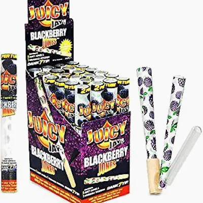 Juicy Jay's Jones Cones Blackberry, designed to enhance the natural flavours of your product. These cone papers smell and taste great! Each flavour, hand packed to ensure a pleasant smoking experience. Comes with a Dank-7 tip. Soaked for 7 days to ensure maximum flavour. Juicy Jay's Jones Cones Blackberry Dank-7 Tip 1-1/4 Size Flavoured and Scented Naturally Flavoured Triple Dipped for Taste Slow burning Pre Rolled Cone Papers