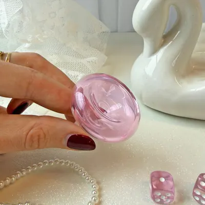 Located in case 22 in the lobby This slide speaks for itself! The elongated shape of this slide is so unique, and the transparent pink color only enhances the vibes! Whether you're buying a replacement or want to add a 'lil flair to another piece, you can't go wrong with this cutie piece. Made of pink borosilicate glass. Male, 14mm, and fits almost all the bongs that we sell!