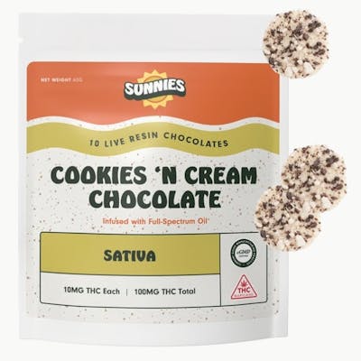 Cookies n' Cream White Chocolate Sativa Live Resin Bites - 10mg 10ct - Sunnies