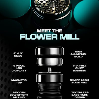 Low Effort, Easy to Clean, & Amazing Results. Strong and durable 6061 Aircraft Aluminum. 3-Piece. Enjoy your pollen all the time. Smooth operation utilizing BPA-free plastic bushing. Faster and lower effort milling experience than a toothed grinder. Magnetic top and quick release lower catch. Specifications Capacity: up to 1.5g Materials: Aircraft Grade 6061-T6 Aluminum, Anodized Dimensions: 2.0in (51mm) W x 1.3in (34mm) H Weight: 4.0oz (114g)